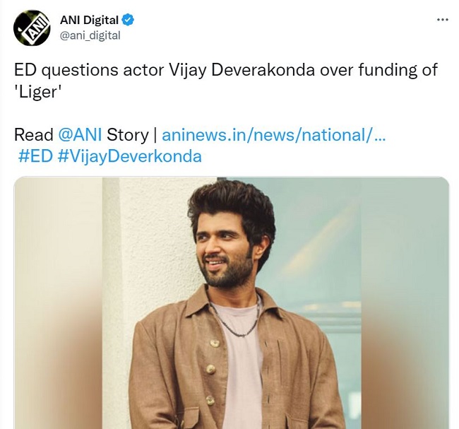 33 वर्षीय अभिनेता से सुबह 8:00 बजे से पूछताछ की जा रही थी। इसके पहले ईडी को यह खबर आई थी कि लाइगर में हवाला के माध्यम से मनी लांड्रिंग कर विदेशी निवेश किया गया है। ऐसा तेलांगना के एक बड़े राजनेता के कहने पर किया गया है। लाइगर इस वर्ष 25 अगस्त को सिनेमाघरों में रिलीज हुई थी। इस फिल्म के माध्यम से विजय देवरकोंडा ने हिंदी में डेब्यू भी किया था।