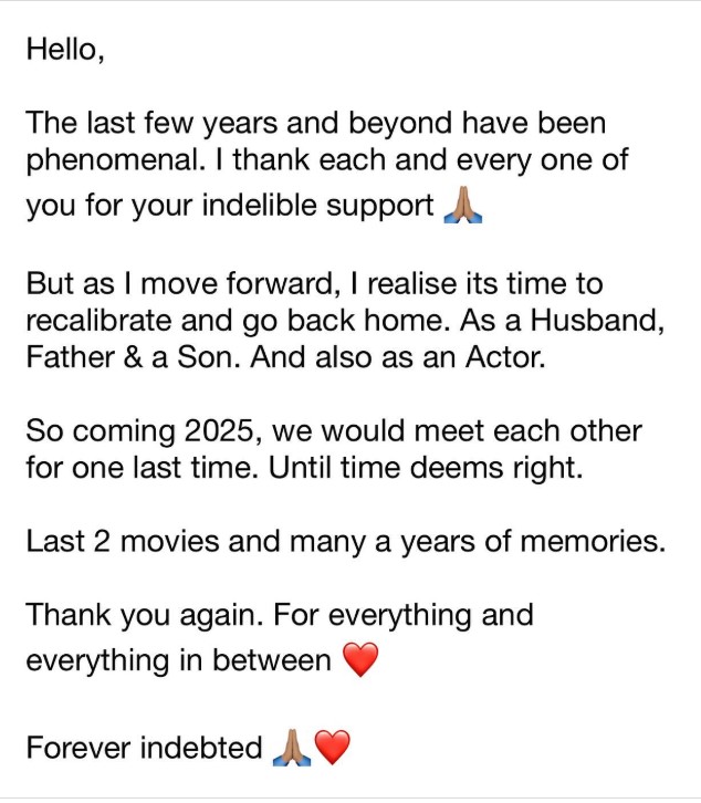 उन्होंने अपने पोस्ट को लेकर सफाई दी है और बताया है कि क्या सच में वह एक्टिंग के फील्ड से नाता तोड़ रहे हैं या नहीं। आइए इस मामले को विस्तार से जानते हैं।