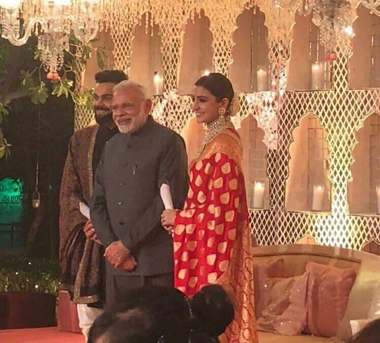 विराट-अनुष्का के रिसेप्शन में भारत के प्रधानमंत्री नरेंद्र मोदी भी पहुंचे।