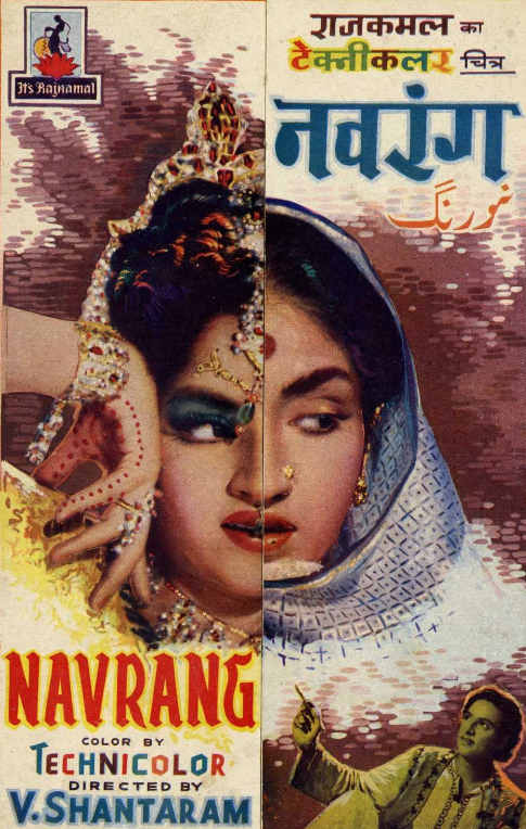 फिल्म का शीर्षक भी उन्होंने नवरंग रखा, जो वी शांताराम की पहली रंगीन फिल्म थी। इस फिल्म में भरत व्यास के लिखे व आशा भोसले व मन्ना डे के स्वरों से सजे गाने रंग दे रे, जीवन की चुनरिया... में जीवन के प्रति उल्लास झलकता है। वहीं, फिल्म के गीत अरे जा रे हट नटखट... में नायिका संध्या में साहस और अपने काम के प्रति समर्पण दिखता है।