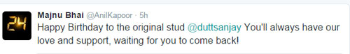 अनुभव सिन्हा, राणा डग्गुबाती, अली फजल, मिलन लुथरिया, राज कुंद्रा, एशा देओल और सोफी चौधरी जैसे सितारों ने भी संजय दत्त को ट्वीट कर बर्थडे विश किया और साथ ही सभी ने एक स्वर में कहा, जल्द लौट आओ, हमें आपका इंतजार है।