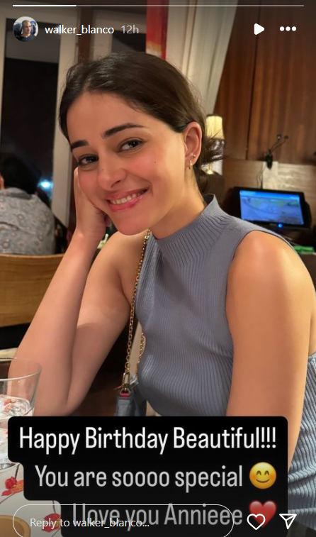 उन्होंने अनन्या को जन्मदिन की बधाई देते हुए उनकी तस्वीर अपनी इंस्टा स्टोरी पर शेयर की। इस फोटो में अनन्या ने ग्रे रंग का टॉप पहना है और वह किसी रेस्टोरेंट में बैठी हैं। वॉकर ने एक्टर को बर्थडे विश करते हुए अपने प्यार का इजहार भी किया। उन्होंने कैप्शन में लिखा, "हैप्पी बर्थडे ब्यूटीफुल..तुम बहुत खास हो। आई लव यू"।