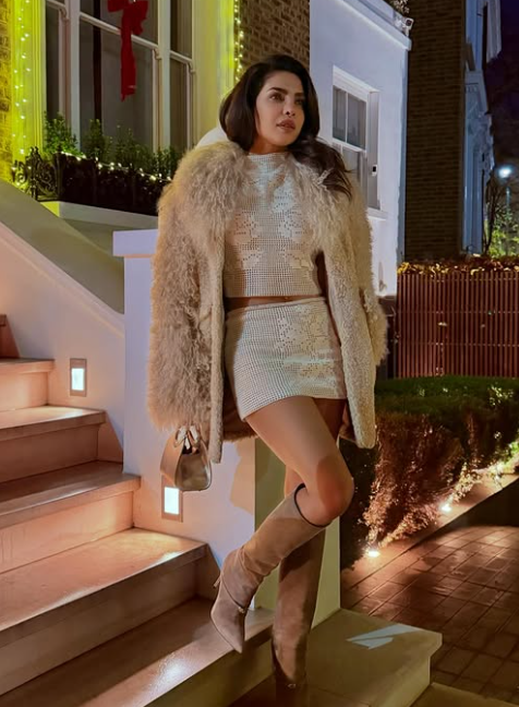 अगर आप हर तरीके की कॉस्टयूम पहनने में खुद कम्फर्टेबल महसूस करते हैं, तो आप प्रियंका चोपड़ा का ये लुक भी अपना सकते हैं, जिसमें एक्ट्रेस ने व्हाइट रंग की शिमरी शॉर्ट स्कर्ट के साथ सेम रंग का टॉप पहना हुआ है, जिसे वह फैदर जैकेट और लॉन्ग बूट के साथ कंप्लीट कर रही हैं।