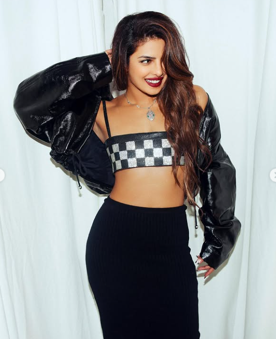 प्रियंका चोपड़ा का एक और लुक है, जिसे देखकर आपके दिमाग में ये बात आ सकती है कि इस लुक को न्यू ईयर पार्टी में कैरी किया जा सकता है। ये लुक प्रियंका चोपड़ा ने निक जोनस के कॉन्सर्ट में अपनाया था। इस फोटो में प्रियंका ने ब्लैक बॉडी फिट स्कर्ट के साथ शिमरी चेस क्रॉप-टॉप पहना हुआ है और एक ब्लैक रंग की जैकेट कैरी की हुई है। अगर आप क्रॉप टॉप और स्कर्ट पहनने में कंफर्टेबल नहीं हैं, तो भी आपके पास जैकेट एक ऑप्शन है, जिसमें कम्फर्ट भी है और स्टाइलिंग भी।