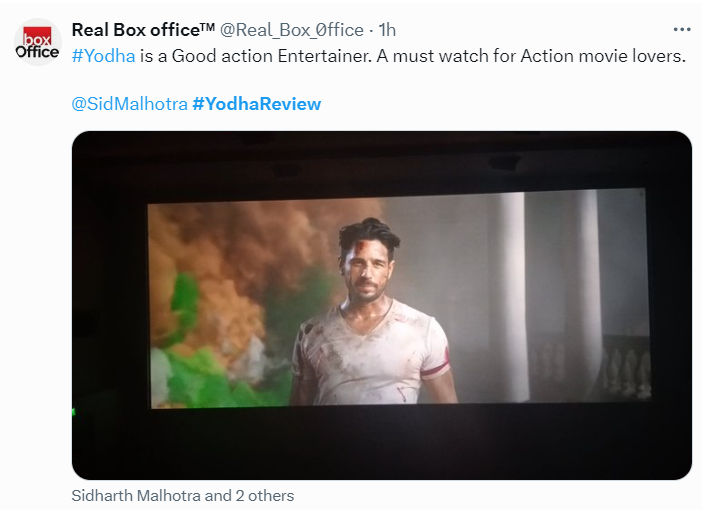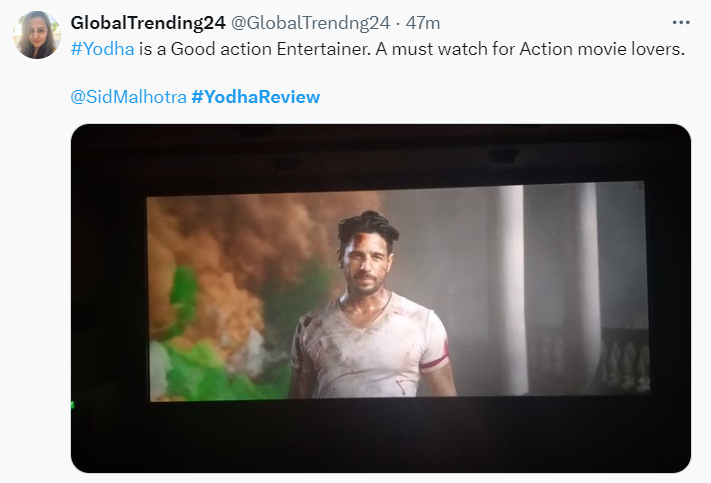 एक और अन्य यूजर ने लिखा, "योद्धा एक अच्छी एक्शन एंटरटेनर फिल्म है। एक्शन मूवी लवर को ये फिल्म जरूर देखनी चाहिए"।