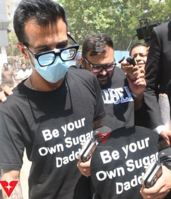 युजवेंद्र चहल सुबह कोर्ट में ब्लैक जैकेट पहनकर पहुंचे थे, लेकिन तलाक पर फैसला आने के बाद वह कोर्ट से निकले, तो काले रंग की टी-शर्ट में नजर आए। इस पर लिखा शब्द सुर्खियों में आ गया है। दरअसल, क्रिकेटर की टी-शर्ट पर लिखा था कि 'Be your own Sugar Daddy' युजवेंद्र चहल के इस कोट का संबंध यूजर्स ने उनकी एक्स वाइफ धनश्री से लगाना शुरू कर दिया है। ज्यादातर लोगों का सोशल मीडिया पर कहना है कि उन्होंने ऐसा सोच-समझकर किया था।