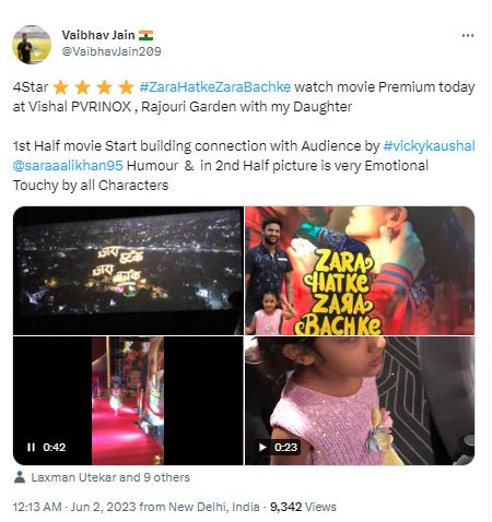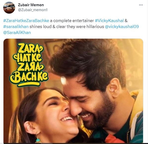 'जरा हटके, जरा बचके' की कहानी ने दर्शकों को खुद से काफी कनेक्ट किया है। लोग सोशल मीडिया पर फिल्म की कहानी को सिंपल और मजेदार बता रहे हैं। एक यूजर ने कमेंट करते हुए लिखा, "सारा अली खान-विक्की कौशल फिल्म के फर्स्ट हाफ में ऑडियंस के साथ बहुत ही अच्छे से कनेक्शन बिल्ड कर रहे हैं, दोनों का ह्यूमर देखने को मिल रहा है, लेकिन सेकंड हाफ आपको पूरी तरह से इमोशनल कर देगा"।
