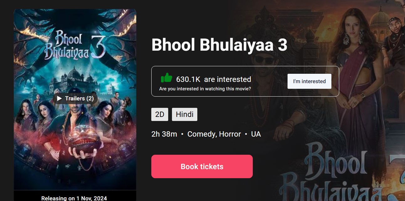 कार्तिक आर्यन की फिल्म की पहले दिन 17000 तक टिकटें बिकीं। वहीं, सिंघम अगेन की एडवांस बुकिंग के ओपनिंग कलेक्शन के आंकड़े आज शाम तक आ जाएंगे। इस बीच अगर बुक माय शो पर दोनों फिल्मों का बज देखें, तो फिलहाल 'भूल भुलैया 3' इस मामले में आगे है।