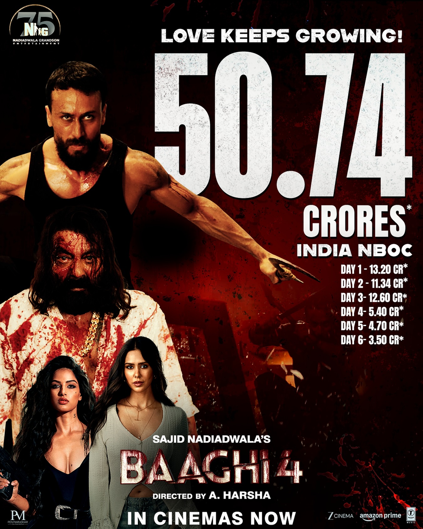 Baaghi 4 Box Office Collection टाइगर श्रॉफ संजय दत्त और हरनाज कौर संधू अभिनीत बागी 4 साल की मच अवेटेड फिल्मों में से एक थी। साजिद नाडियाडवाला द्वारा निर्मित यह एक्शन-एंटरटेनर फिल्म सप्ताह के दिनों में बॉक्स ऑफिस पर अच्छी पकड़ बनाए हुए है। लेटेस्ट अपडेट के अनुसार फिल्म ने 50 करोड़ का कलेक्शन पार कर लिया है।