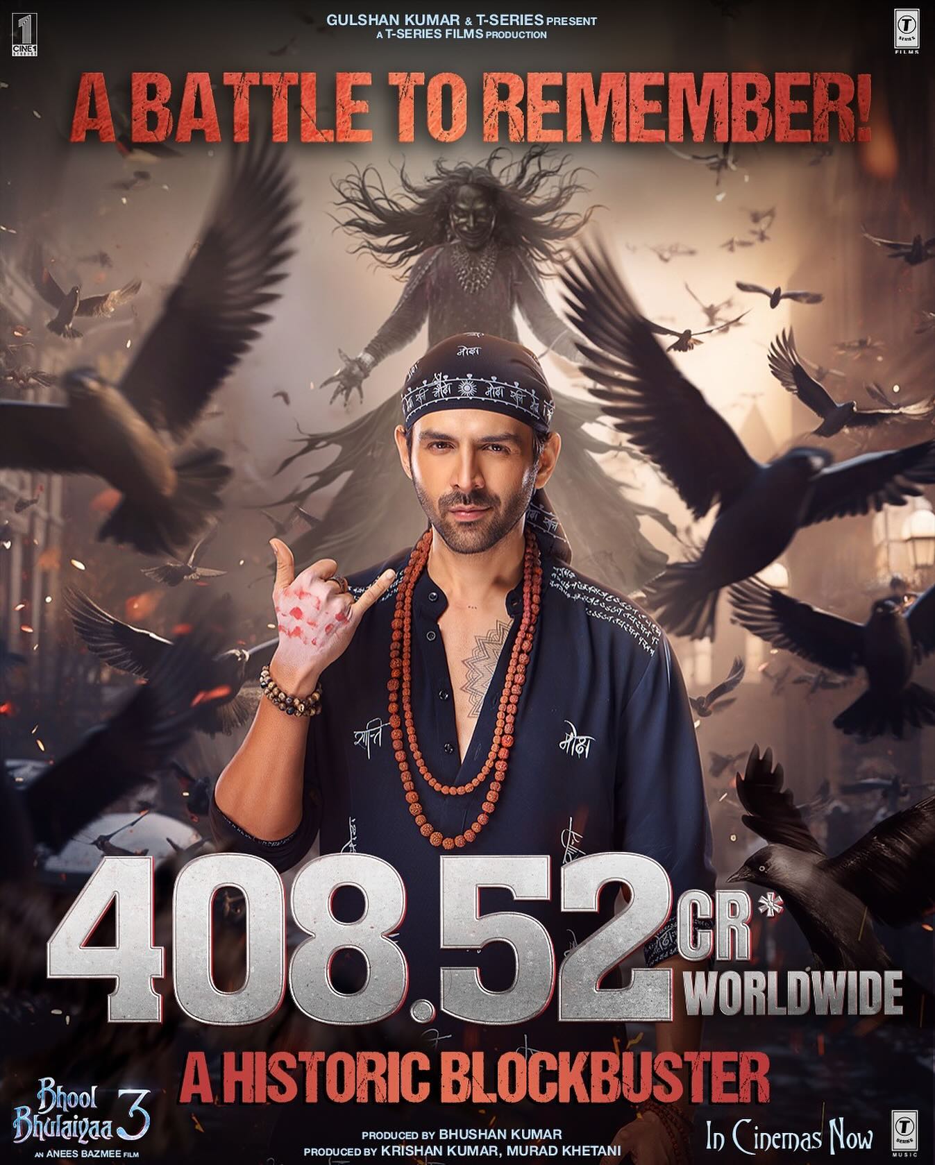 इंस्टेंट बॉलीवुड की रिपोर्ट के आधार पर भूल भुलैया 3 ने रिलीज के 16 दिन के भीतर 367.95 करोड़ का वर्ल्डवाइड कलेक्शन कर लिया था। अब लगभग इसके 10 दिन बाद फिल्म 401.35 करोड़ रुपये के कलेक्शन के साथ लगातार रेस में बनी हुई है।