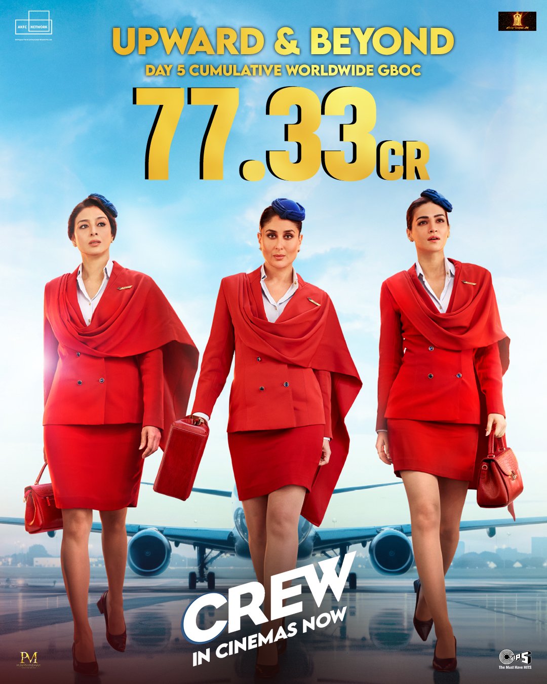 'क्रू' लगातार ग्लोबल बॉक्स ऑफिस पर अपना दबदबा बनाए हुए है। ताजा आंकड़ों के अनुसार, फिल्म ने दुनियाभर में 77.33 करोड़ का बिजनेस कर लिया। आने वाले वीकेंड में 'क्रू' के बिजनेस की रफ्तार और बढ़ सकती है और फिलम वर्ल्डवाइड 100 करोड़ क्लब में शामिल हो सकती है, लेकिन कॉमेडी के तड़के के साथ।