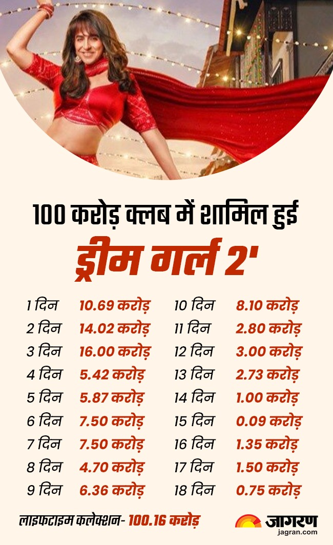 नई दिल्ली, जेएनएन। Dream Girl 2 Box Office Collection Day 18: आयुष्मान खुराना की फिल्म ड्रीम गर्ल 2 कई दिनों से 100 करोड़ क्लब के लिए मेहनत कर रही थी। फिल्म की राह में पहले गदर 2 और बाद में जवान रोड़ा बन गई। इन दोनों फिल्मों ने बॉक्स ऑफिस पर ऐसी आंधी लाई कि ड्रीम गर्ल 2 के लिए टिकना भी मुश्किल कर दिया। हालांकि, अब फिल्म ने 100 करोड़ क्लब में एंट्री कर ली है।