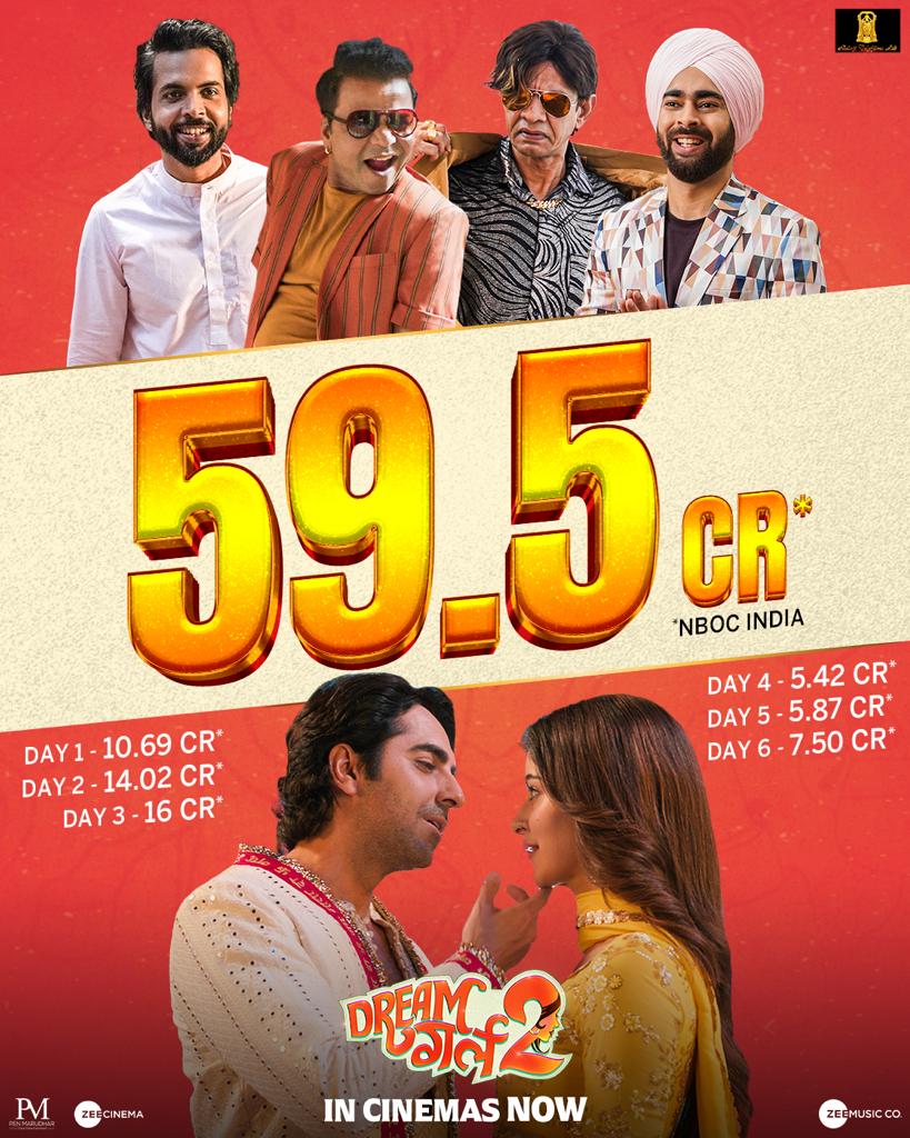 ड्रीम गर्ल 2 को रक्षाबंधन की छुट्टी का फायदा मिला और वीकेंड आने से पहले ही कमाई में इजाफा देखने को मिल रहा है। ड्रीम गर्ल 2 ने बुधवार को लगभग 7.50 करोड़ का बिजनेस किया है। इसके साथ ही 6 दिनों में ड्रीम गर्ल 2 ने डोमेस्टिक बॉक्स ऑफिस पर 59.50 करोड़ का नेट कलेक्शन कर लिया है।