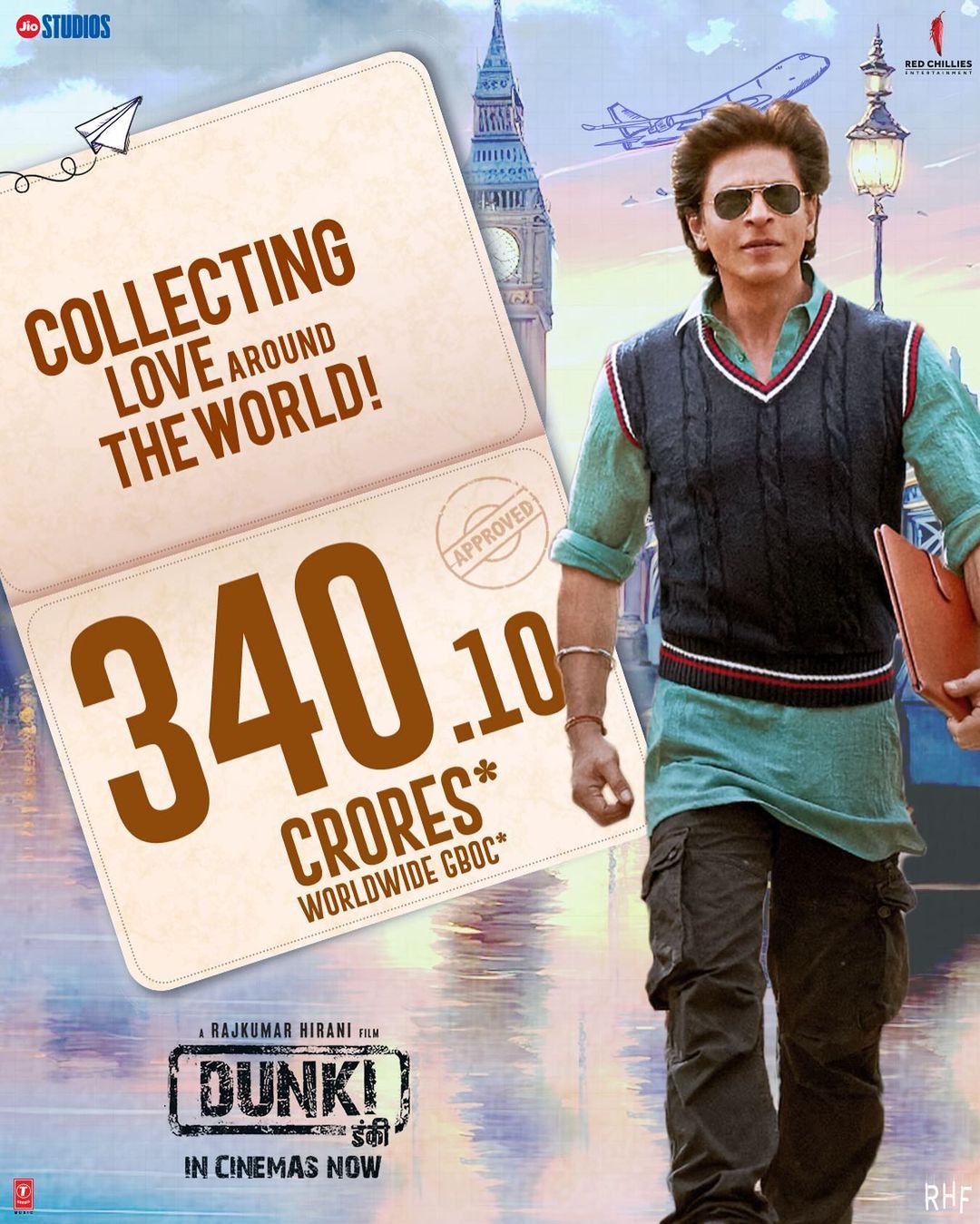 ऐसे में एक नजर डाली जाए 'डंकी' के लेटेस्ट वर्ल्डवाइड बॉक्स ऑफिस कलेक्शन की तरफ तो मेकर्स ने इस मूवी की कमाई के ताजा आंकड़े शेयर किए हैं। जिसके आधार पर शाह रुख खान की 'डंकी' ने दुनियाभर में 340.10 करोड़ का ग्रॉस वर्ल्डवाइड कलेक्शन कर डाला है। बता दें कि 9वें दिन इस फिल्म ने ग्लोबली 16.33 करोड़ का कारोबार किया है।