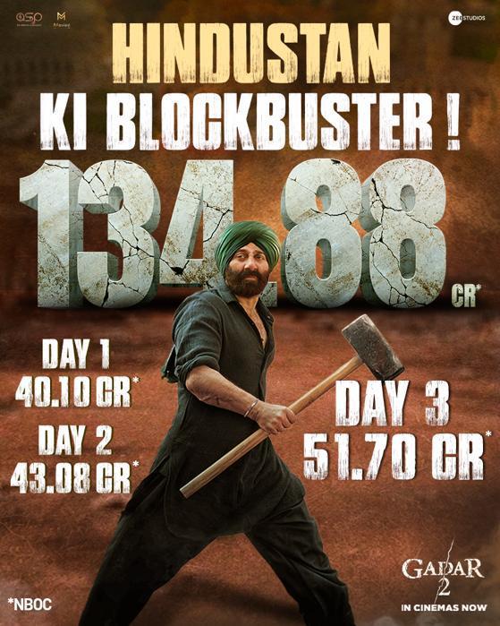 इस जोड़ी को 'गदर 2' के साथ वही प्यार और दर्शकों का उत्साह मिला, जोकि 21 साल पहले मिला था। ओह माय गॉड 2 के साथ बॉक्स ऑफिस पर टकराने वाली ये फिल्म लगातार अच्छी कमाई कर रही है। पहले ही दिन 50 करोड़ के करीब पहुंचने वाली इस फिल्म ने तीन दिन में ही बॉक्स ऑफिस पर शतक लगा दिया है।