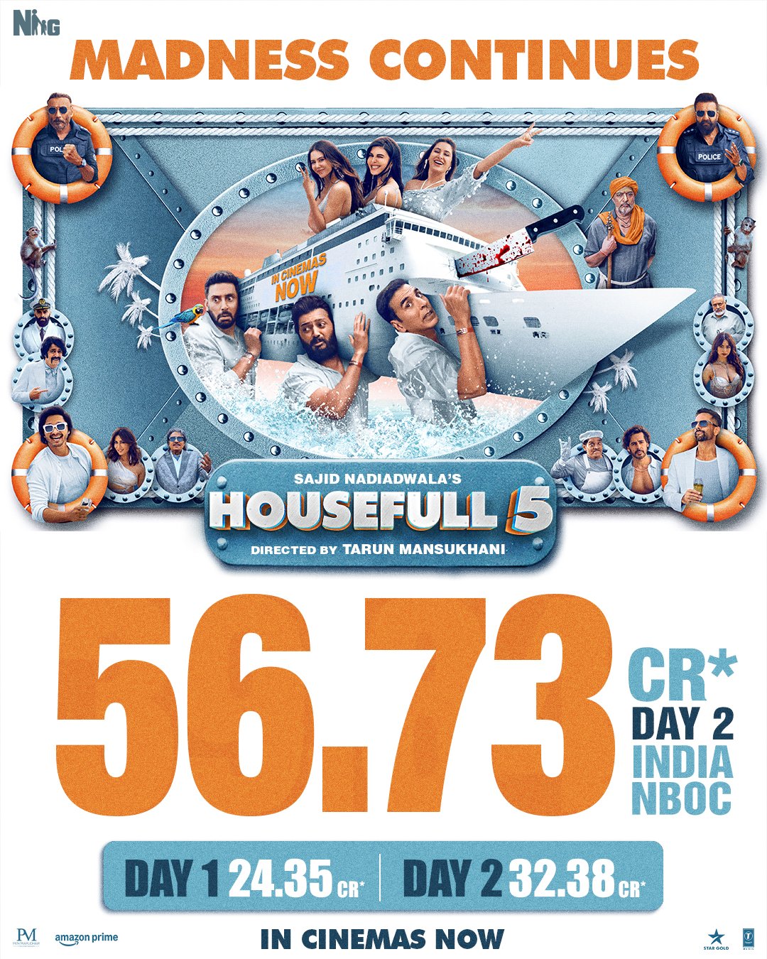 Housefull 5 Collection अक्षय कुमार की मल्टी स्टारर फिल्म हाउसफुल 5 इन दिनों थिएटर्स में ऑडियंस का भरपूर मनोरंजन कर रही है। बॉक्स ऑफिस पर इस मूवी को धमाकेदार शुरुआत मिली है जिसकी बदौलत हाउसफुल 5 ने रिलीज के दो दिन के भीतर 2025 की इन पांच हिट फिल्मों का कमाई में पत्ता साफ कर दिया है।