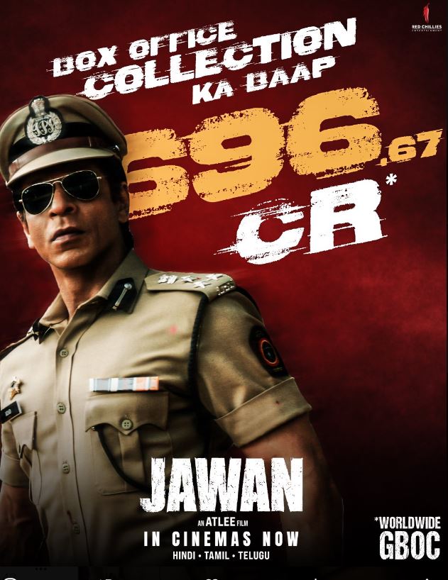 रेड चिलीज एंटरटेनमेंट ने हाल ही में अपने अधिकारिक ट्विटर अकाउंट पर फिल्म का गुरुवार तक का वर्ल्डवाइड आंकड़ा शेयर किया है। 'जवान' ने रिलीज के आठवें दिन तक दुनियाभर में 696 करोड़ का आंकड़ा पार करते हुए 'गदर 2' को पीछे छोड़ दिया है।