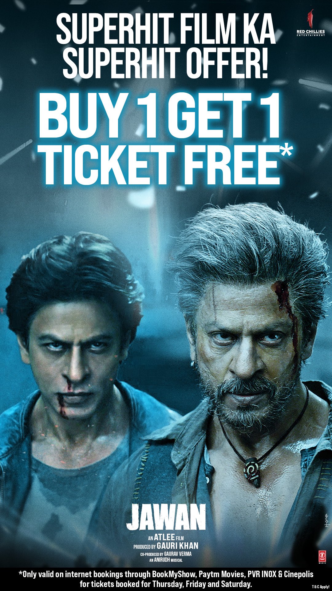 जवान को लेकर हाल ही में जानकारी शेयर की गई कि अब तीन दिनों (28 सितंबर से 30 सितंबर) के लिए एक टिकट खरीदने पर एक टिकट फ्री का ऑफर रहेगा। मेकर्स ने स्ट्रैटेजी जवान की खत्म होते बिजनेस को बचाने के लिए अपनाई है, क्योंकि अब मैदान में फुकरे 3 और द वैक्सीन वॉर भी उतर चुकी है।