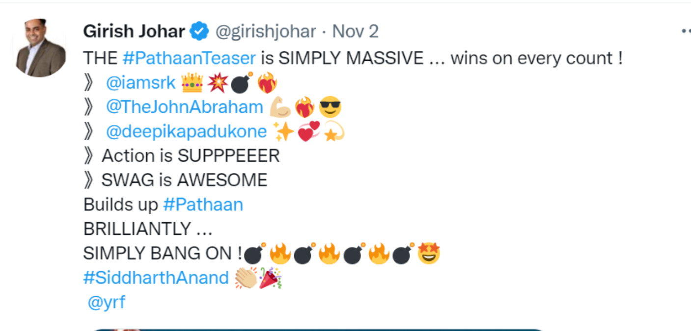 पठान से ऐसी उम्मीदें इसलिए भी बढ़ गयी हैं, क्योंकि केजीएफ 2 के रिलीज होने से पहले तक सबसे बड़ी ओपनिंग लेने का रिकॉर्ड सिद्धार्थ की फिल्म वॉर के नाम था, जिसने 51.60 करोड़ पहले दिन जमा किये थे। इस फिल्म में ऋतिक रोशन और टाइगर श्रॉफ ने लीड रोल्स निभाये थे। पठान इन चुनौतियों से निपटने में कितना सक्षम है, इसका पता तो ट्रेलर आने के बाद ही चलेगा।