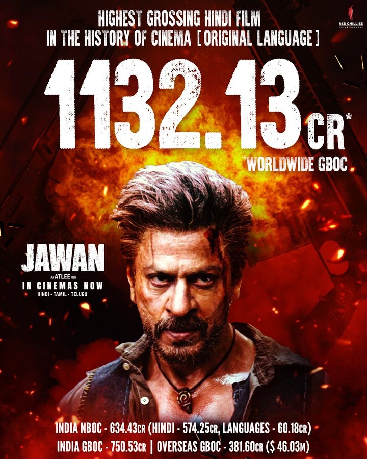 जिसके मुताबिक अब तक इस मूवी ने 1132.13 करोड़ की कमाई दुनियाभर में कर डाली है। इससे पहले 'जवान' हिंदी सिनेमा की इकलौती ऐसी फिल्म बन चुकी है, जिसने वर्ल्डवाइड 1100 करोड़ का आंकड़ा पार किया है।