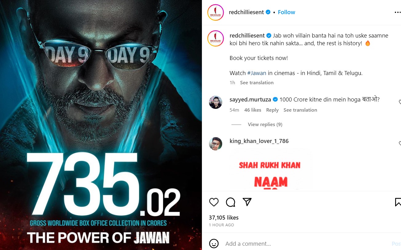 फिल्म क्रिटिक रमेश बाला के अनुसार, 'जवान' ने ग्लोबल बॉक्स ऑफिस पर 700 करोड़ का आंकड़ा पार कर लिया है। फिल्म ने 735 करोड़ की कमाई कर डाली है।