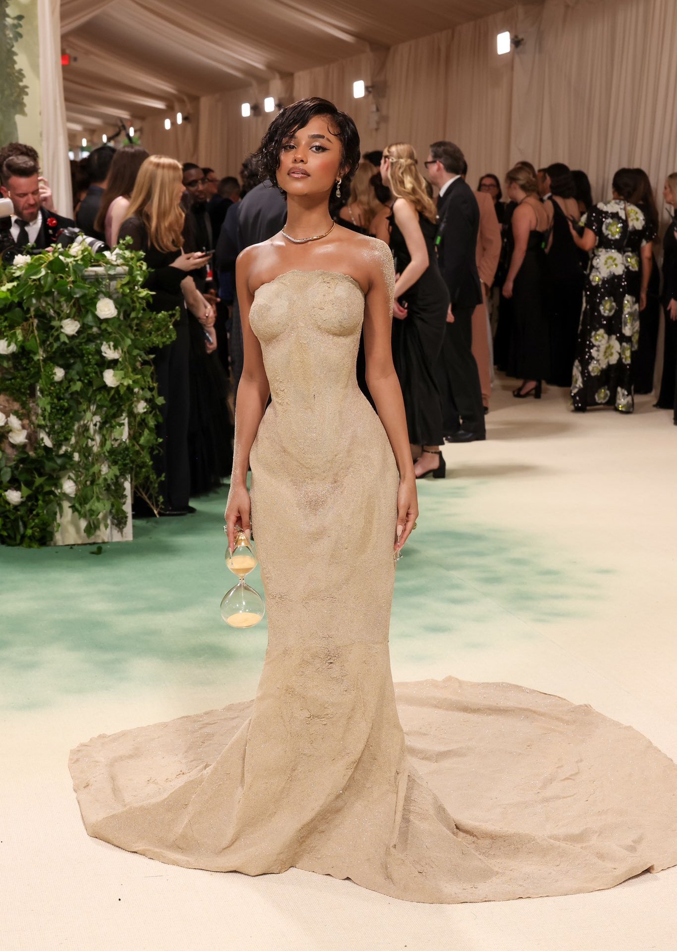 दक्षिण अफ्रीकी सिंगर और गीतकार टीला (Tyla) ने इस साल मेट गाला में अपना डेब्यू किया। इस मौके पर सिंगर खूबसूरत गाउन में नजर आई, जो असल में रेत से बनी हुई थी।