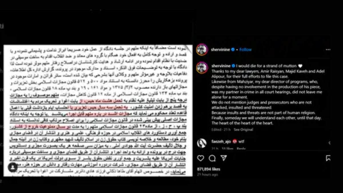 3 साल की जेल की सजा को लेकर ईरानी सिंगर शर्विन हाजीपौर ने शुक्रवार को इंस्टाग्राम पर एक लेटेस्ट पोस्ट शेयर किया है। इस पोस्ट में गायक ने कहा- जिस दिन ईरान में संसदीय चुनाव हुए, उसी दिन उनके विरुद्ध फैसला सामने आया।