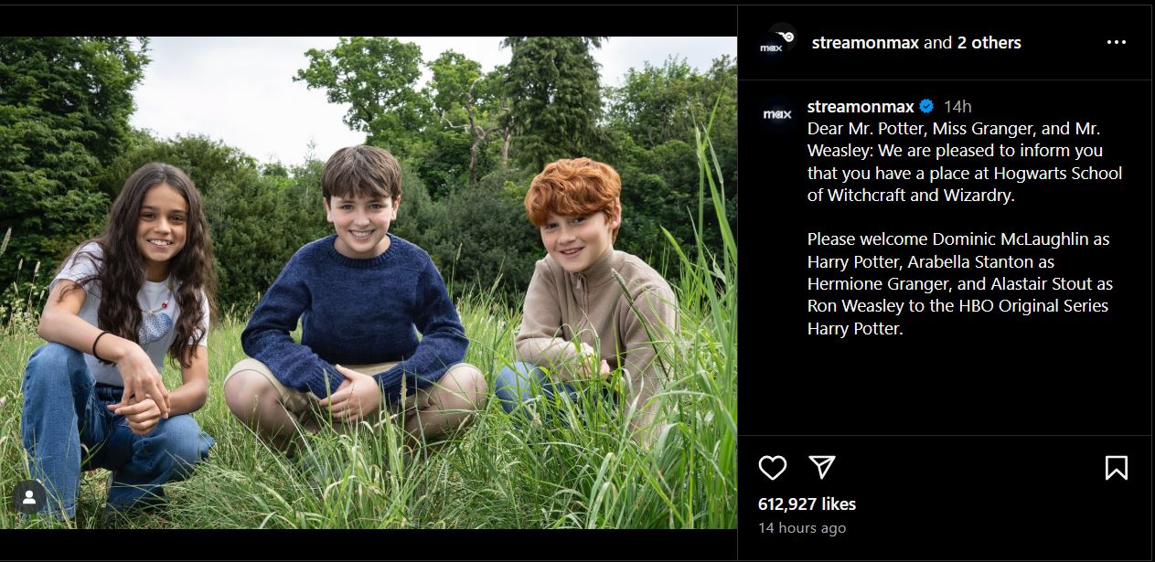 एचबीओ ने इंस्टाग्राम पर पोस्ट करते हुए लिखा, "प्रिय मिस्टर पॉटर, मिस ग्रेंजर और मिस्टर वीस्ली, हमें यह बताते हुए खुशी हो रही है कि आपको हॉगवॉर्ट्स स्कूल ऑफ विचक्राफ्ट एंड विजार्ड्री में जगह मिली है।" इस सीरीज के लिए 30,000 से ज्यादा बच्चों ने ऑडिशन दिया था। कास्टिंग डायरेक्टर्स लुसी बेवन और एमिली ब्रॉकमैन की अगुवाई में एक लंबी खोज के बाद इन तीनों को चुना गया।