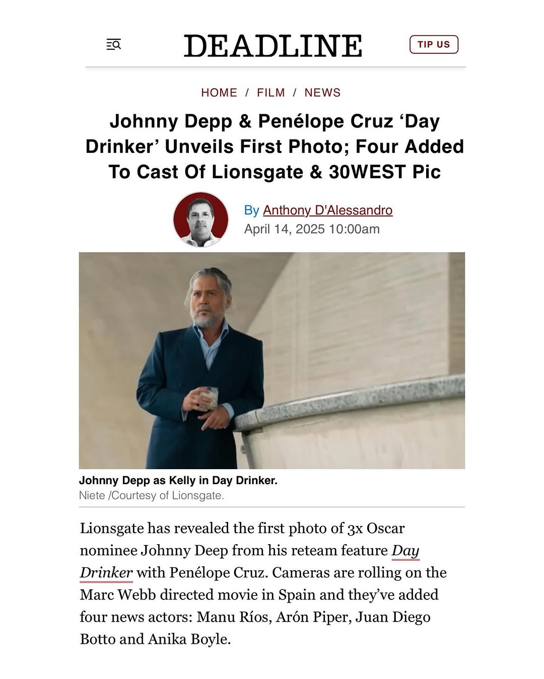 हॉलीवुड के मशहूर एक्टर Johnny Depp लंबे समय के बाद पर्दे पर वापसी करने वाले हैं। अभिनेता मोस्ट अवेटेड पोजेक्ट (Day Drinker) के साथ फैंस को सरप्राइज देने वाले हैं। इस थ्रिलर फिल्म के लिए उन्होंने वह पेनेलोप क्रूज के साथ हाथ मिलाया है। फिल्म पोस्टर में उनका लुक बेहद शानदार लगा रहा है और उनको पहचान पाना भी मुश्किल हो रहा है।