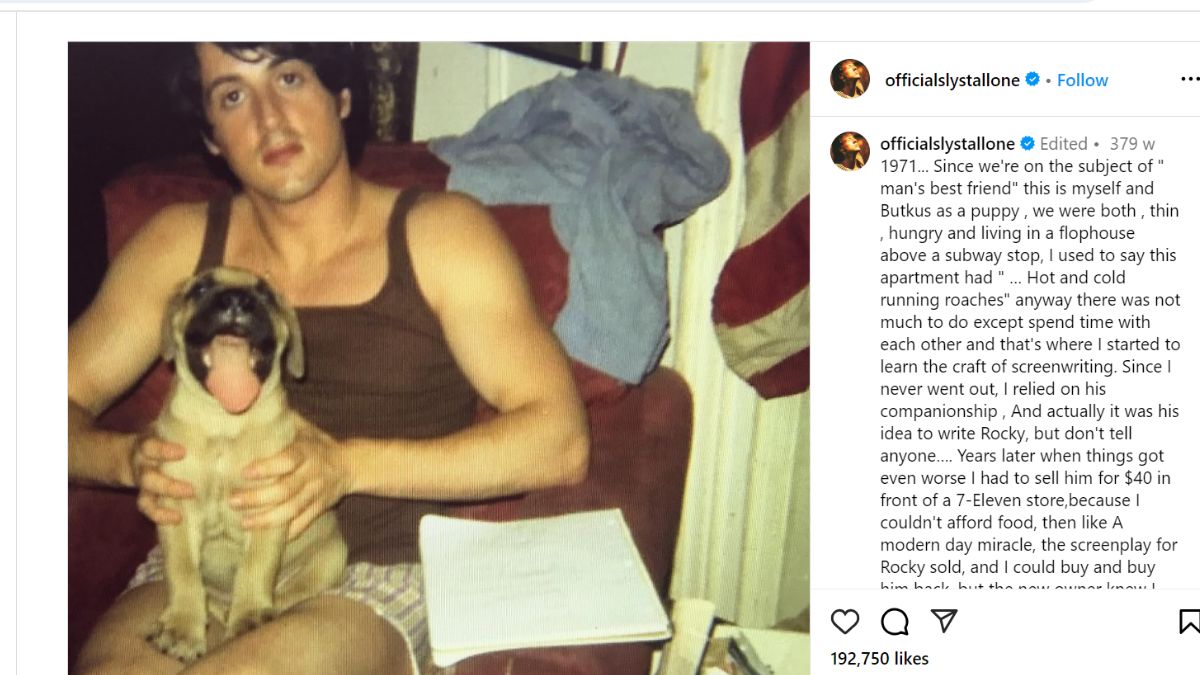 साल 2017 में सिल्वेस्टर स्टेलोन ने अपने पालतू डॉग बटकस को लेकर एक मजेदार किस्सा साझा किया था। अपने ऑफिशियल इंस्टाग्राम हैंडल पर एक पोस्ट में उन्होंने लिखा- बात साल 1971 के दौरान की है, जब मैं संघर्ष के दौर से गुजर रहा था। उस वक्त मेरा साथी और कोई नहीं बल्कि एक प्यारा जानवर यानी मेरा बुलमास्टिफ डॉग बटकस रहा।