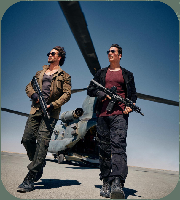 उधर, कैप्टन मीशा (मानुषी छिल्लर) अपने बॉस कर्नल आजाद (रोनित राय) को बताती है कि वैसे ही मुखौटाधारी से उसकी भिड़ंत शंघाई में हुई थी, लेकिन उसके घाव तुरंत भर गए। आजाद उससे यह बात किसी से साझा ना करने को कहता है। (हालांकि, उसकी वजह अंत तक समझ नहीं आई) पैकेज को वापस लाने के लिए आजाद कोर्ट मार्शल किए गए दो सैन्य अधिकारी फिरोज उर्फ फ्रेडी (अक्षय कुमार) और रॉकी उर्फ राकेश (टाइगर श्राफ) को बुलाता है।