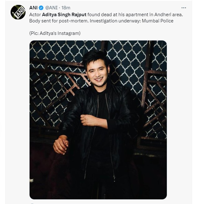 नई दिल्ली, जेएनएन। Actor Aditya Singh Rajput found Dead: सोमवार की दोपहर एंटरटेनमेंट इंडस्ट्री के लिए बुरी खबर लेकर आई। मशहूर एक्टर और मॉडल आदित्य सिंह राजपूत की संदिग्ध परिस्थितियों में मौत की खबर सामने आयी। रिपोर्ट्स के अनुसार, उनका शरीर अंधेरी स्थित घर के वॉशरूम में जमीन पर पड़ा मिला था। उन्हें अस्पताल ले जाया गया, जहां चिकित्सकों ने मृत घोषित कर दिया।