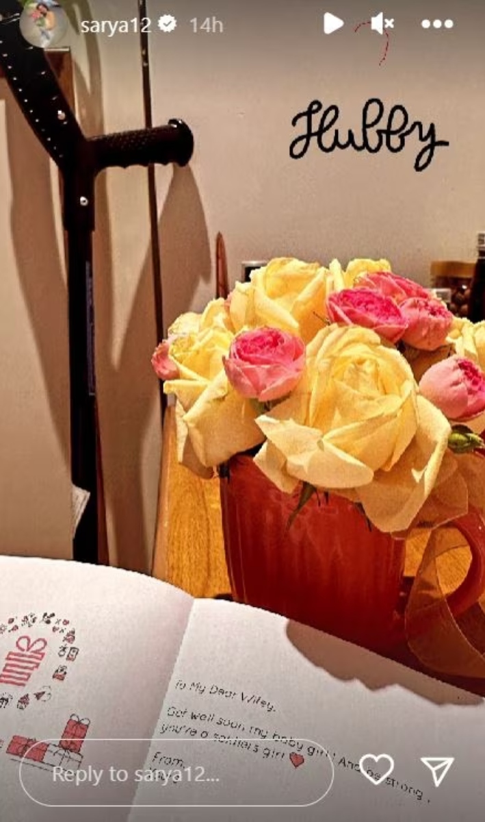 ऐसे में राहुल ने बीवी को हिम्मत देने के लिए एक लव लेटर और बुके भिजवाया। येलो-रेड फूलों का बुके और लेटर की तस्वीर शेयर करते हुए श्रद्धा ने लिखा ‘हबी’। पैर पर चोट लगने के बाद एक्ट्रेस कुछ समय के लिए बेड रेस्ट पर हैं। ऐसे में उनकी फ्रेंड्स उन्हें अच्छा महसूस कराने के लिए कोशिश भी करते नजर आ रहे हैं।