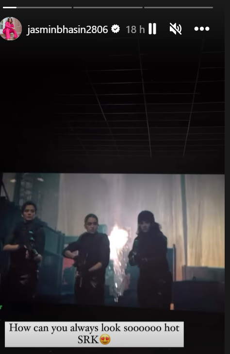टीवी अभिनेत्री जैस्मिन भसीन भी फिल्म की तारीफ करते हुए नजर आईं। अपने इंस्टाग्राम पर उन्होंने किंग खान की तारीफ करते हुए लिखा 'एसआरके आप हमेशा इतने हॉट कैसे दिख सकते हैं'।