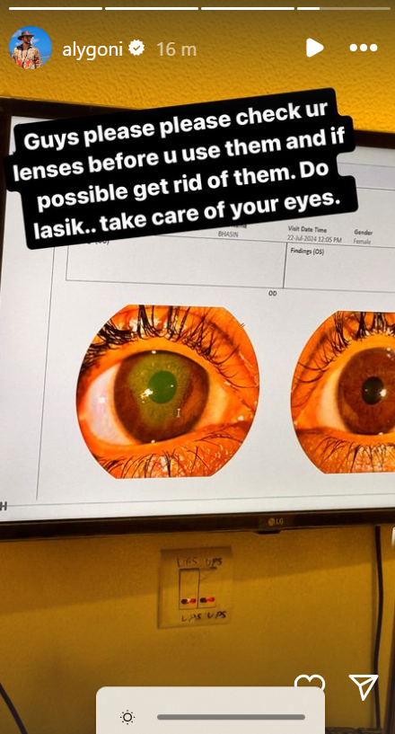 इसके बाद एक्टर ने दूसरी स्टोरी में उनके आंखों की एक डॉक्टर चेकअप के दौरान की तस्वीर शेयर की है। इस फोटो को शेयर करते हुए उन्होंने लिखा है कि दोस्तों कृपया अपने लेंस का इस्तेमाल करने से पहले उन्हें चेक कर लें और अगर संभव हो तो उन्हें हटा दें। लेसिक करवाएं। अपनी आंखों का ख्याल रखें।