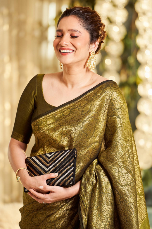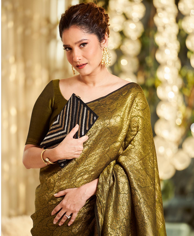 अंकिता लोखंडे ने हाल ही में अपना लेटेस्ट फोटोशूट कराया है, जिसकी तस्वीरें उन्होंने अपने इंस्टाग्राम अकाउंट पर शेयर की हैं। फोटोज में अंकिता साड़ी में नजर आ रही हैं। उन्होंने गोल्डन साड़ी पहनी हुई है। इस दौरान पोज देते वक्त अंकिता पर्स से अपना पेट करव करती दिख रही हैं।