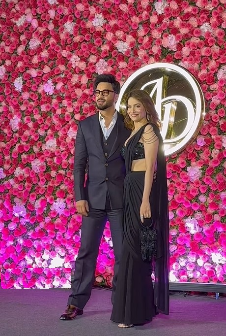 आरती सिंह के संगीत में अंकिता लोखंडे ब्लैक कलर की साड़ी में पहुंचीं। न्यूज मेकअप के साथ एक्ट्रेस ने हैवी डायमंड ज्वैलरी कैरी की। वहीं, विक्की जैन ब्लैक कलर के थ्री पीस सूट में नजर आए। पार्टी में कपल ने जैसे ही एंट्री की, पैपराजी में एक्ट्रेस को कैप्चर करने के लिए होड़ मच गई। अंकिता लोखंडे ने भी पार्टी में जाने से पहले खुशी- खुशी कैमरे के लिए पोज किया।