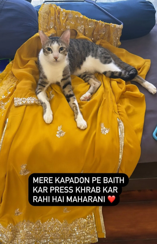 आरती के वेडिंग आउटफिट पर बैठ गयी बिल्ली