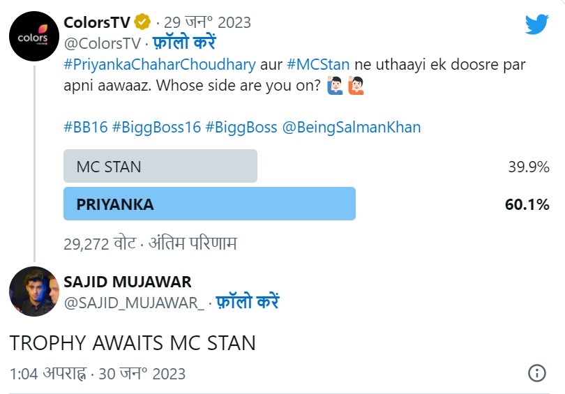 बिग बॉस 16 के कंटेस्टेंट प्रियंका चाहर चौधरी और शिव ठाकरे ऐसे दो खिलाड़ी हैं, जो इस सीजन की ट्रॉफी जीतने की मजबूत दावेदारी रखते हैं। टास्क परफॉर्म करना हो या फिर किसी मुद्दे पर स्टैंड लेना, ये दोनों कभी भी पीछे नहीं रहे हैं। अब तक शो के फैंस और कई सेलेब्स दोनों में से किसी एक के विनर बनने की बात कह चुके हैं, लेकिन सोशल मीडिया ट्रेंड की माने तो घर का सबसे शांत खिलाड़ी इनसे भी ऊंची दहाड़ मार रहा है।