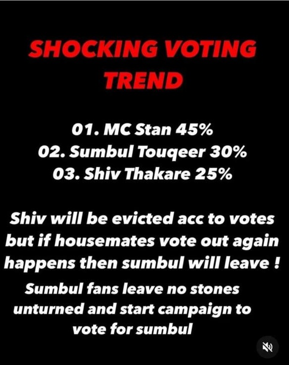 बता दें कि बिग बॉस की खबरें देने वाली वेबसाइट के अनुसार वोटिंग के हिसाब से इस बार घर में सबसे कम वोट मिले हैं शिव ठाकरे को और ये सुनकर आपके पैरों तले जमीन जरूर खिसक जाएगी। शिव को कुल 25 प्रतिशत वोट्स मिले हैं और सुम्बुल को मिले हैं 30 प्रतिशत वोट। इसके साथ ही एमसी स्टैन नंबर वन पर हैं उन्हें अब तक 45 परसेंट वोट मिले हैं।