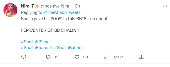 हालांकि आपको ये जानकर हैरानी होगी कि सोशल मीडिया पर लोग प्रियंका चहर चौधरी को नहीं, बल्कि शालीन भनोट को बचाने की बात करते हुए नजर आ रहे हैं। उनका मानना है कि शालीन का शो में काफी योगदान है। एक यूजर ने कमेंट करते हुए लिखा, 'शालीन ने बिग बॉस को अपना 200 पर्सेंट दिया है'। दूसरे यूजर ने लिखा, 'सिर्फ और सिर्फ शालीन को बचाना चाहते हैं'।