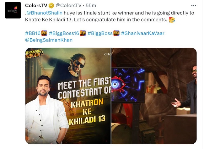 अंत में, शालीन भनोट बिग बॉस 16 के प्रतियोगी को अवसर मिलता है कि वह खतरों के खिलाड़ी 13 में भाग लें। वह खतरों के खिलाड़ी 13 के पहले घोषित सदस्य भी बनते हैं। इसके पहले बिग बॉस ने घर की बिग बॉस 16 की ट्रॉफी भी दर्शकों के सामने पेश की।
