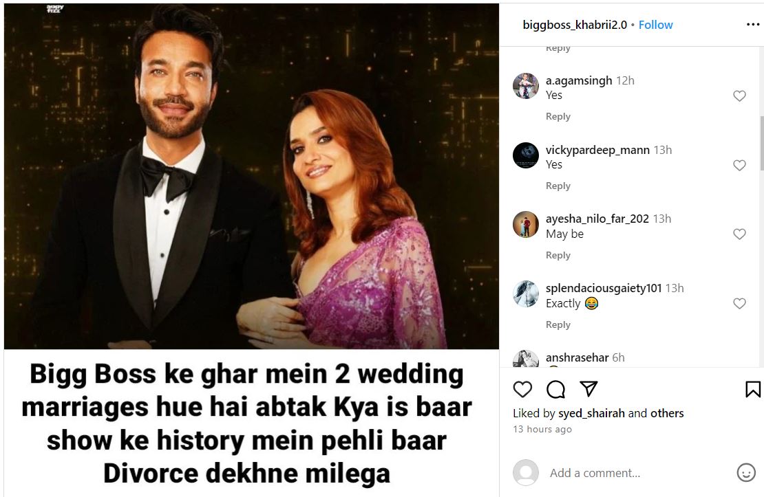 अंकिता और विक्की की लड़ाई पर कई यूजर्स अपनी प्रतिक्रिया जाहिर कर चुके हैं। एक यूजर ने इस कपल की खिल्ली उड़ाते हुए लिखा, "बिग बॉस के घर में दो वेडिंग मैरिज हुए हैं अभी तक, क्या शो के इतिहास में पहली बार डिवोर्स देखने को मिलेगा"।