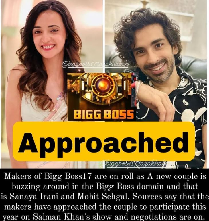 अब बिग बॉस 17 के खबरी ने अपने इंस्टाग्राम पेज पर जानकारी शेयर करते हुए बताया कि अंकिता के अलावा मेकर्स टीवी के पॉपुलर कपल सनाया ईरानी और मोहित साइगल को भी इस शो के लिए अप्रोच कर रहे हैं। फिलहाल फीस को लेकर उनकी मेकर्स के साथ बातचीत चल रही है।