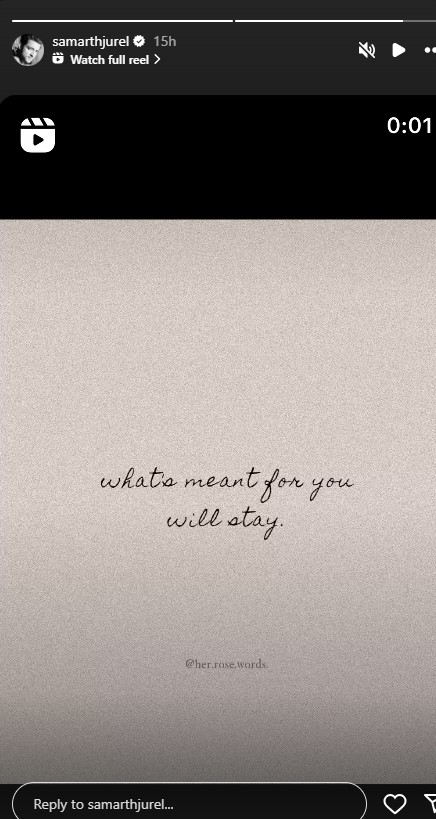 समर्थ जुरेल ने अपनी इंस्टा स्टोरी में एक पोस्ट शेयर किया है। जिसमें उन्होंने इमोशनल नोट शेयर करते हुए लिखा- जो आपका है, वो आपके पास ही रहेगा।