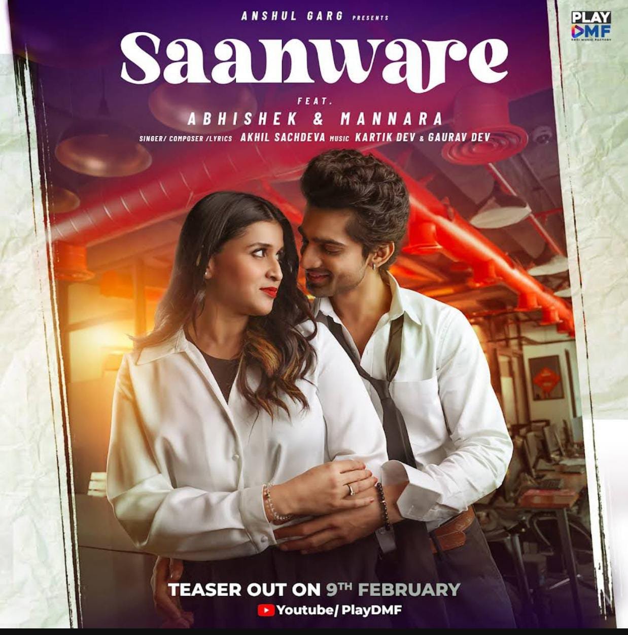 अब अभिषेक कुमार और मनारा चोपड़ा ने अपने-अपने ऑफिशियल इंस्टाग्राम हैंडल पर पहले गाने 'सांवरे' की पहली झलक यानी फर्स्ट लुक पोस्टर के जरिए पेश कर दी है। इस पोस्टर में आप देख सकते हैं कि मनारा अभिषेक की बाहों में नजर आ रही हैं।