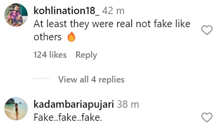 कितनी पोस्ट शेयर कर लो हम आपकी असलियत जानते हैं, ये ड्रामा अब बंद कर दो। दूसरे यूजर ने लिखा है- कितना भी कर लो ये सब दिखावा है, पता नहीं क्यों सच नहीं है आपका रिश्ता। एक अन्य यूजर ने तो इनके रिश्ते को फेक बता दिया है। इस तरह से तमाम यूजर्स अंकिता और विक्की को जमकर खरी-खोटी सुना रहे हैं।