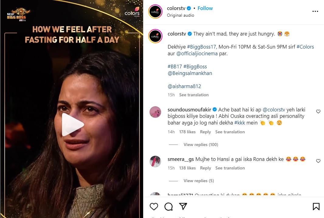 सौंदस मौफाकिर ने ऐश्वर्या शर्मा को ओवर एक्टिंग की दुकान बताया। उन्होंने ये भी कहा कि खतरों के खिलाड़ी 13 में उनकी असलियत छिप गई थी, जो बिग बॉस के घर में जरूर बाहर आ जाएगी। सौंदस ने कमेंट सेक्शन में लिखा, "अच्छी बात ये है कि कलर्स ने इस लड़की को बिग बॉस के लिए बुलाया। अभी उसका ओवर एक्टिंग, असली पर्सनैलिटी बाहर आएगा, जो लोग KKK 13 में नहीं देख पाए।"