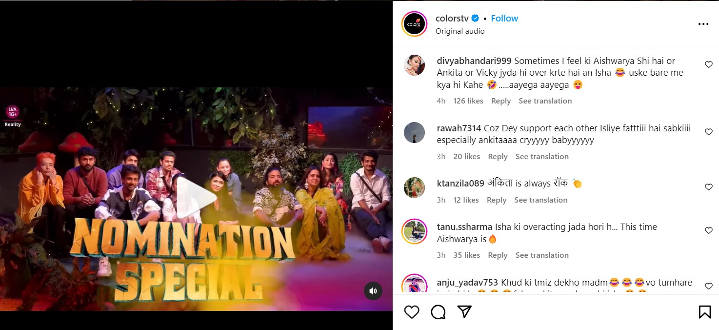 बिग बॉस 17 के हालिया नॉमिनेशन के मेकर्स ने प्रोमो रिलीज किए है। इनमें से एक वीडियो ईशा मालवीय और अंकिता लोखंडे का है, जिसमें दोनों मिलकर ऐश्वर्या शर्मा का मजाक उड़ा रही हैं। वीडियो पर बिग बॉस फैंस ने कमेंट्स किए है। इसके साथ ही अंकिता और ईशा को उनके रवैये के लिए लताड़ लगाई है। बिग बॉस 17 नॉमिनेशन के वीडियो पर कमेंट करते हुए एक यूजर ने कहा, "कभी- कभी मुझे लगता है कि ऐश्वर्या सही है और अंकिता- विक्की ज्यादा ओवर करे हैं और ईशा, उसके बारे में क्या ही कहे...आएगा आएगा।"