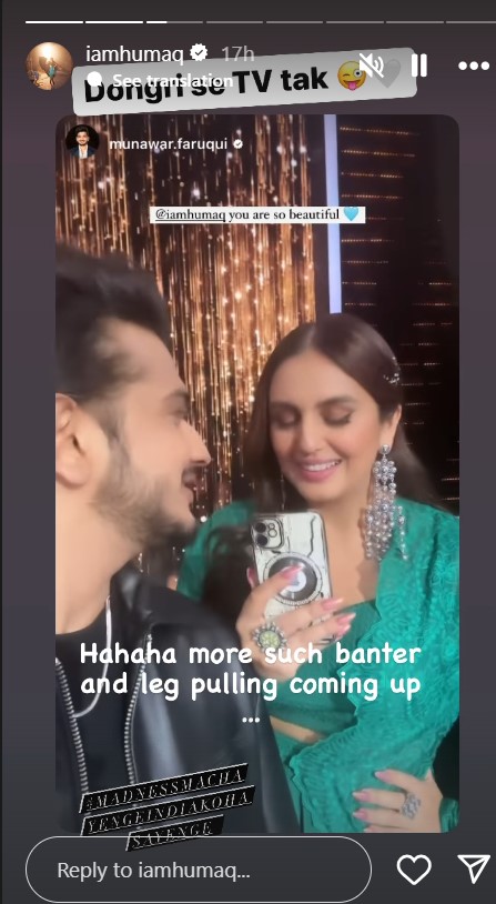 मुनव्वर फारुकी ने सोशल मीडिया पर कुछ फोटो और वीडियो शेयर किए , जिसमें उन्होंने हुमा के साथ पोज दिया, तो वहीं ट्रांसफॉर्मेशन पर उनका मजाक भी उड़ाया। कॉमेडियन ने कहा, 'हाय हुमा।' इस पर एक्ट्रेस कहती हैं, 'ओह हाय मुनव्वर।' फिर मुनव्वर कहते हैं, 'क्या ट्रांसफॉर्मेशन है।' ये सुनते ही हुमा को लगता है कि वह उनके वेट लॉस की बात कर रहे हैं। एक्ट्रेस बताती हैं कि उन्होंने काफी मेहनत से वजन घटाया है।